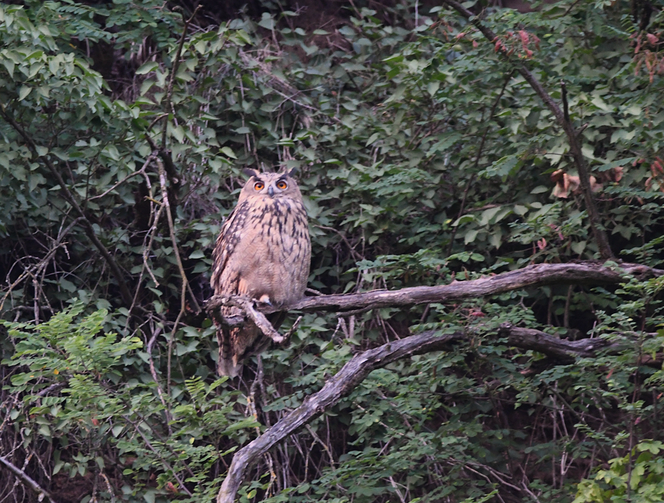 Auch der Uhu, unsere größte heimische Eule, ist seit Jahren am Schlossberg in einem ehemaligen Steinbruch heimisch geworden und hat dort in diesem Jahr erfolgreich drei Junge großgezogen. Brutplätze des Uhus befinden sich überwiegend in Nischen und Höhlen von Steinbrüchen, er tritt aber auch als Bodenbrüter in Wäldern auf, gelegentlich werden verlassene Greifvogelnester als Brutplatz genutzt. In der Wahl ihres Lebensraumes sind Uhus sehr anpassungsfähig, so halten sie sich auch in menschlichen Siedlungen auf und sogar hohe Gebäude dienen ihnen manchmal als Brutplatz. Hier finden sie neben ihrer Hauptbeute den Ratten auch zahlreiche weitere Beutetiere, wie Krähen, Elstern, Singvögel und sogar Igel und Insekten dienen ihnen als Nahrung. Für den Erhalt zahlreicher heimischer Eulen und Käuze ist es entscheidend keine Nagergifte auszubringen, da auch sterbende oder tote Ratten und Mäuse von Eulen gefressen werden.